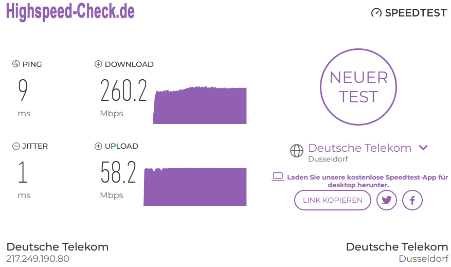 Man sieht auch gut wie konservativ die Telekom hier agiert, mit einer Leitungskapazität von über 1 Gbit im Downstream.