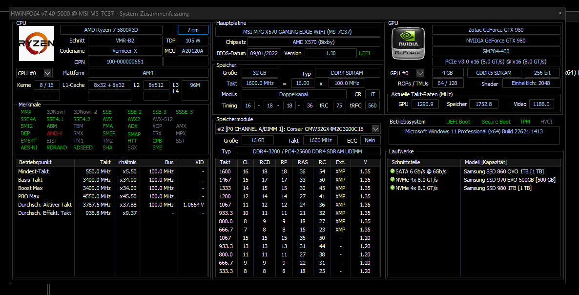 Mainboard: MSI MPG X570 GAMING EDGE WIFI (MS-7C37)