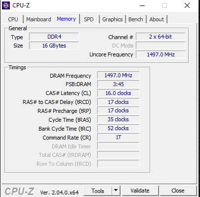 jo, läuft jetzt mit 3000. CPU-Z zeigt dir unter "DRAM Frequency" 1500MHz an weil es Double Data Rate ist. bzw 1497MHz weil der BCLK nicht exakt 100MHz ist. nichts worüber man sich gedanken machen muss.