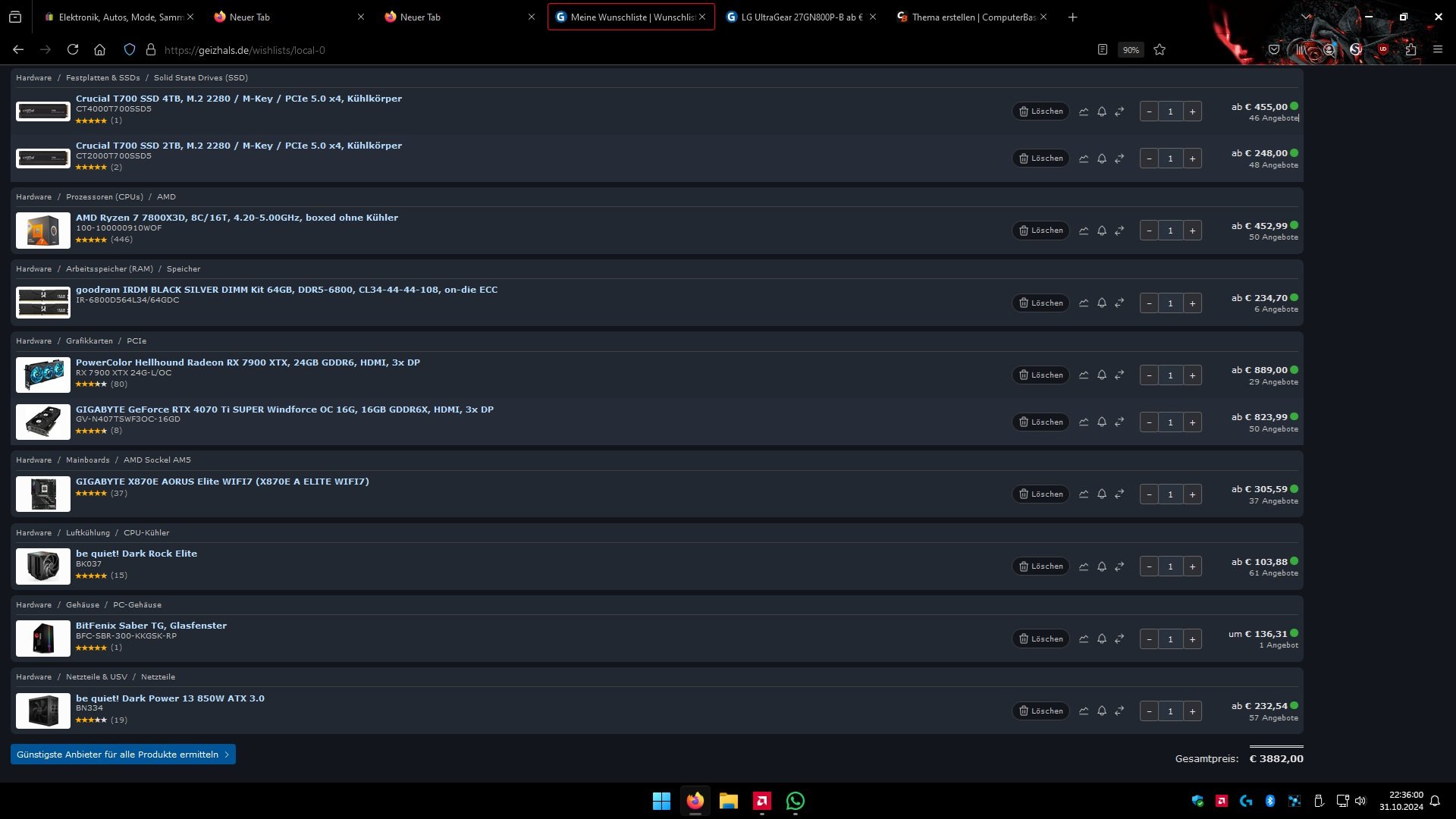- wird auch neu gekauft bin gerde bei der wunschliste im anhang cpu wird dann gegen 9800x3d getauscht wernn verfügbar