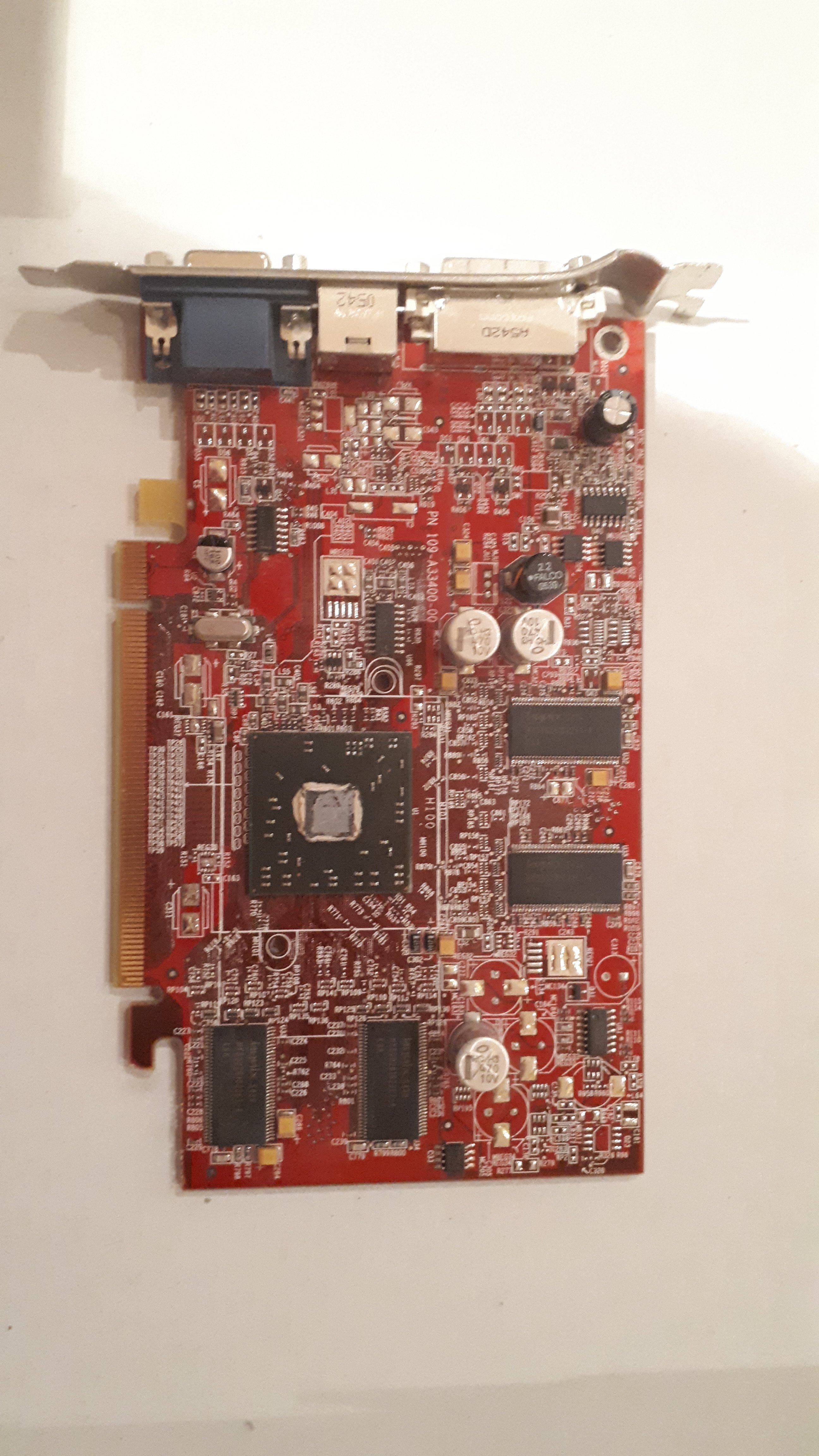 Würde vom roten PCB auf ne alte ATI tippen. Aber wie xxMuahdibxx schon gesagt hat, solltest du die Wärmeleitpaste entfernen.