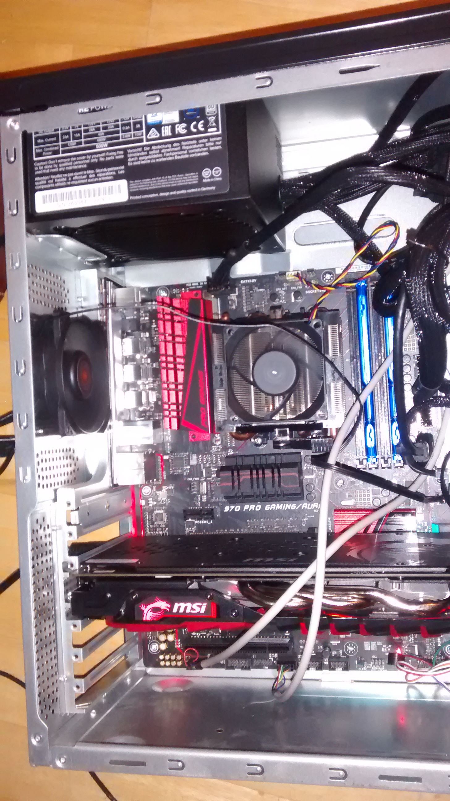 Update: NT und RX-480 sind raus und werden zurückgeschickt. Ich kaufe mir von dem Rückgeld eine neue Case und Lüfter und ein Straight power NT. Bis dahin sind wieder die alten Komponenten drin