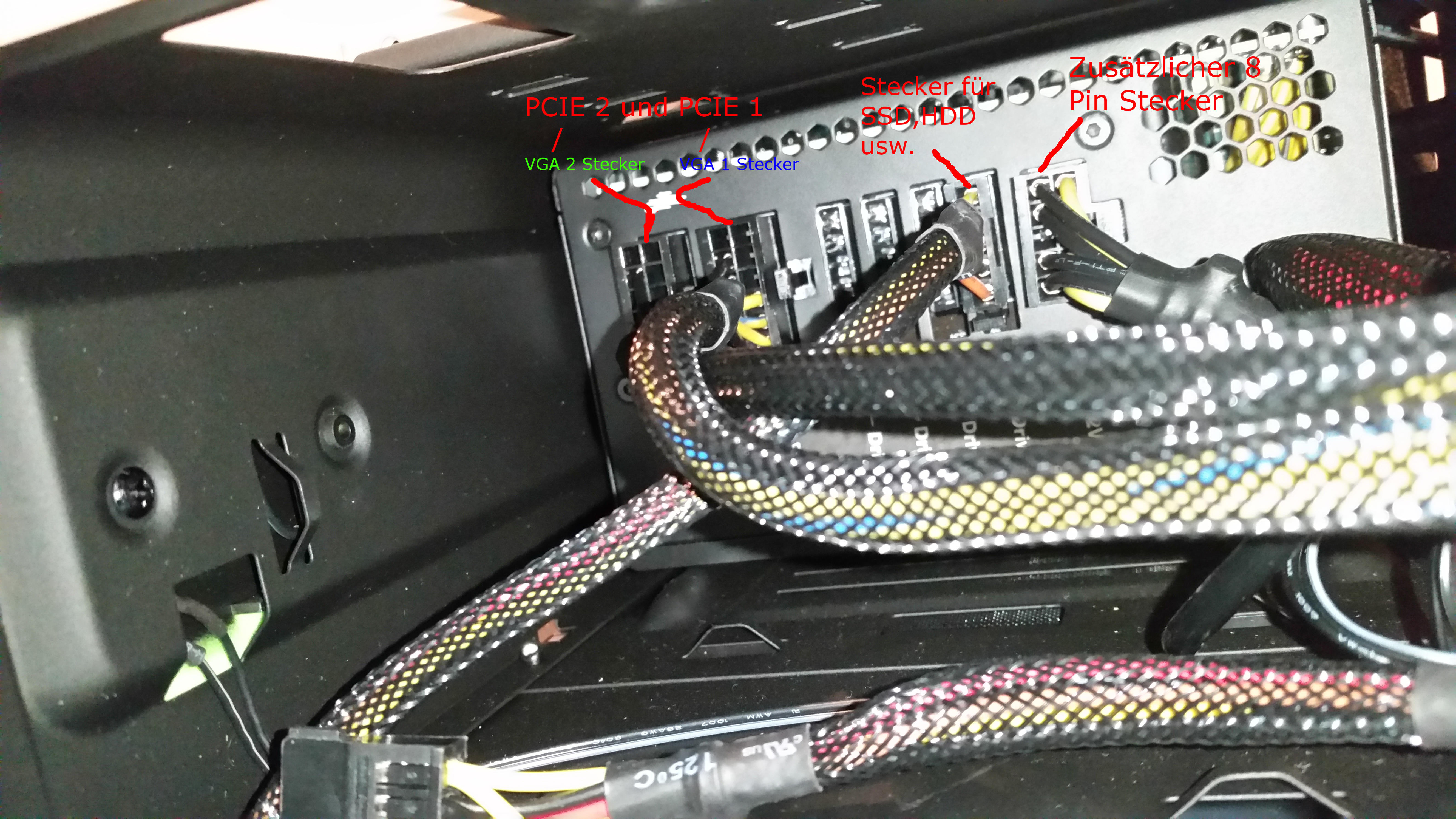 Jetzt folgt noch ein Überblick von meinem PC + Verkabelung. Falls etwas falsch ist, nicht richtig drinnen Steckt oder korrigiert werden muss, bitte mir sagen!