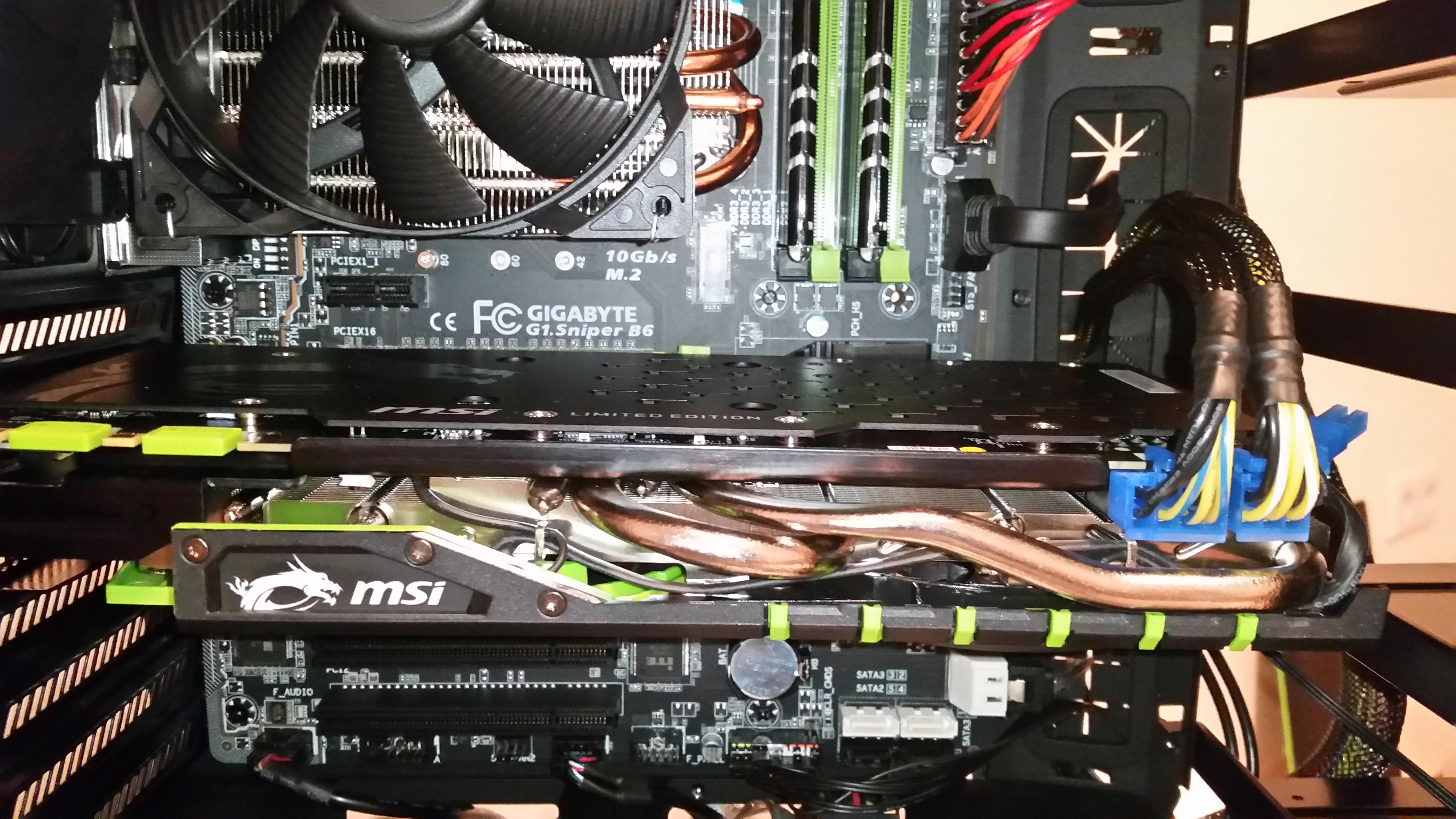 Hier sind die Stecker der Grafikkarte. Ich hatte 2 mal das gleiche Kabel (siehe Bilder davor) und habe bei dem 6 Pin Stecker, einfach 2 Pins des 8 Pin Kabels baumeln lassen. Ist das so in Ordnung, oder stellt das ein Problem da?
