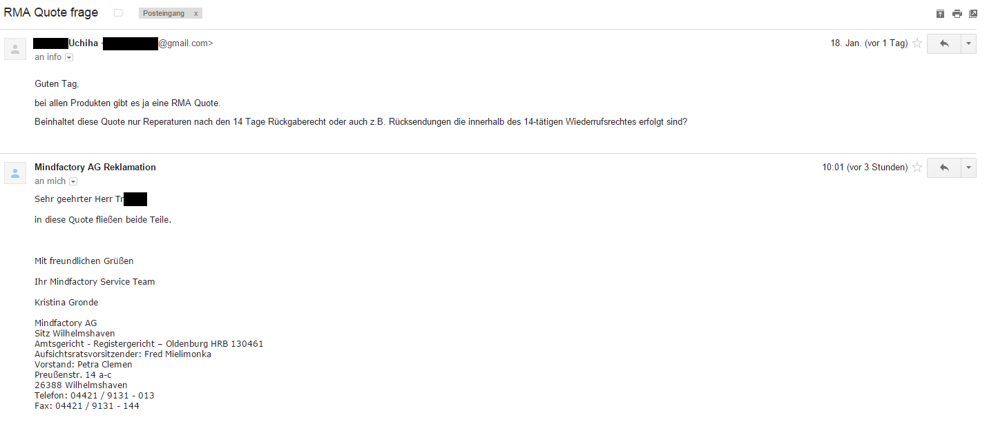 Gestern ging bei mir eine Mail von MF rein bzgl. dem Thema. Die Antwort:King Vendrick schrieb:Das sagt leider null aus, da dort die 14-Tage Widerrufsrecht nicht mit drin sind.