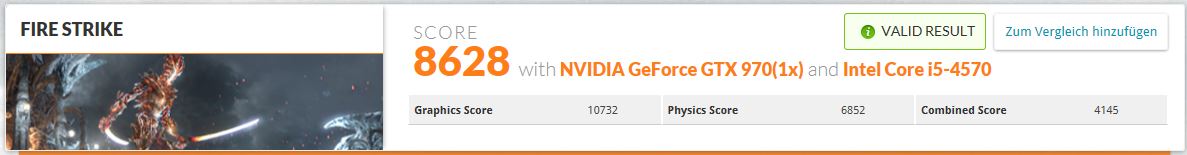 Fire Strike 8769 mit nicht übertaktetem i5 2500k und der MSI Gaming 4GAekoric schrieb:Hat sonst noch wer nen nicht übertakteten Prozessor etwa auf dem Niveau von meinem und ne 970 der seine Ergebnisse teilen würde?