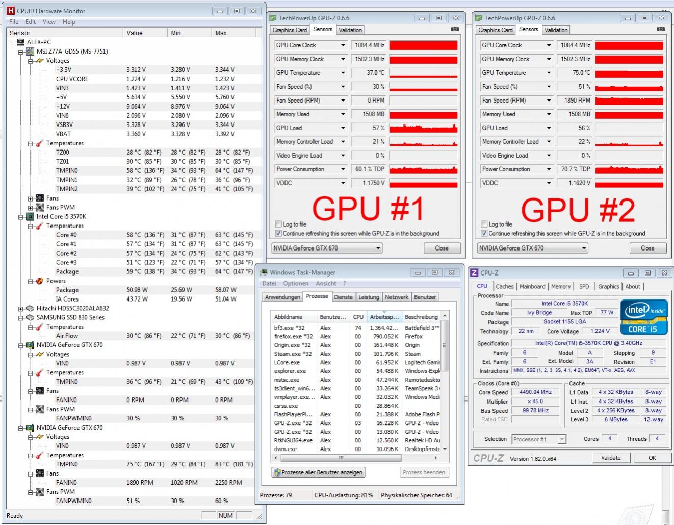 - 2x Zotac GeForce GTX 670 @ SLI (Treiber: 310.70)