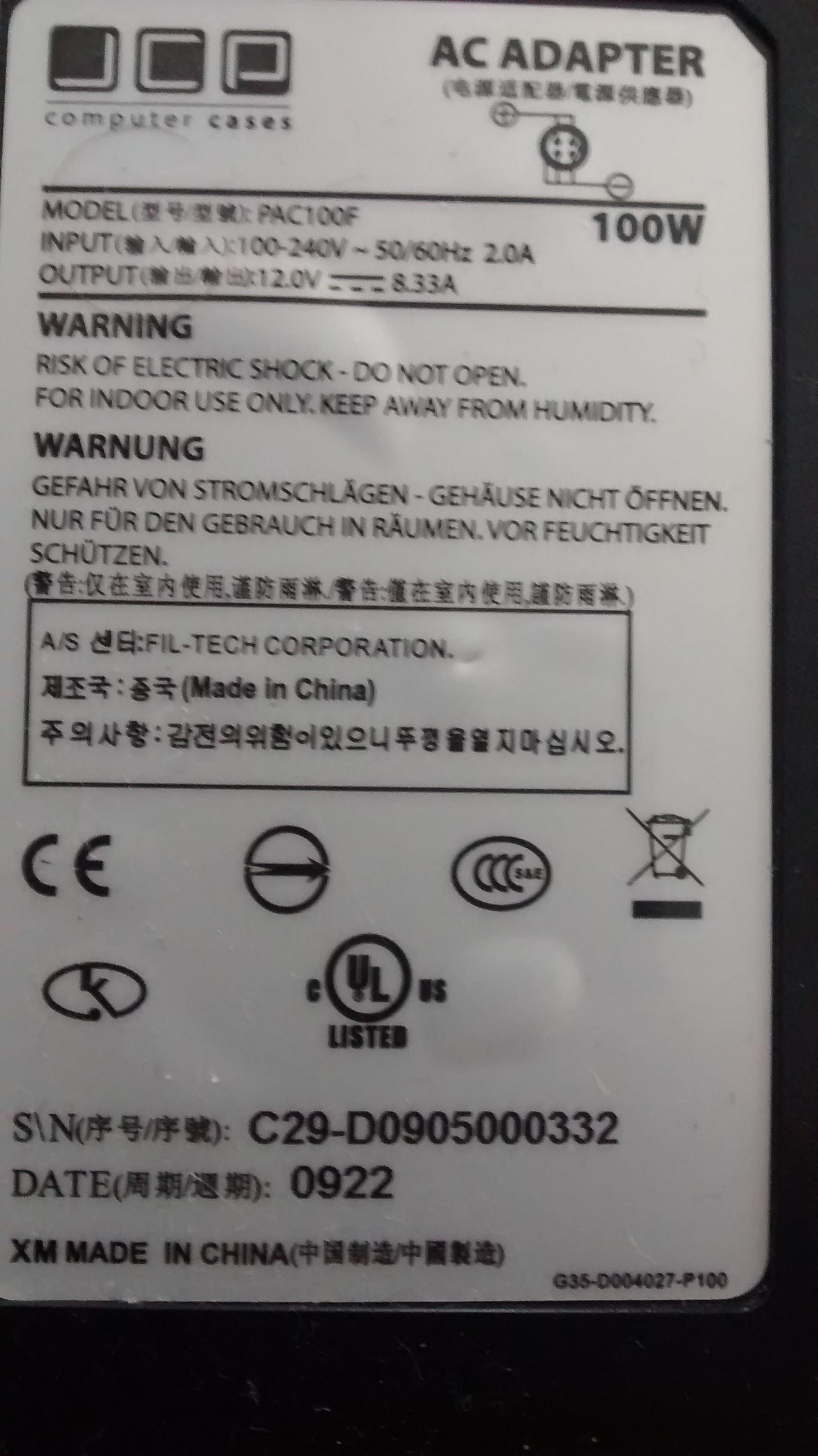 Dieses hat ein externes 100W Netzeil und ich bin auf der Suche