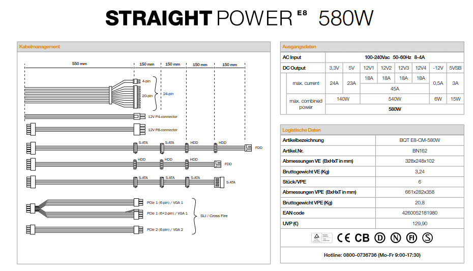 vorhandenes Netzteil: BE-QUIET! STRAIGHT POWER E8 CM 580W
