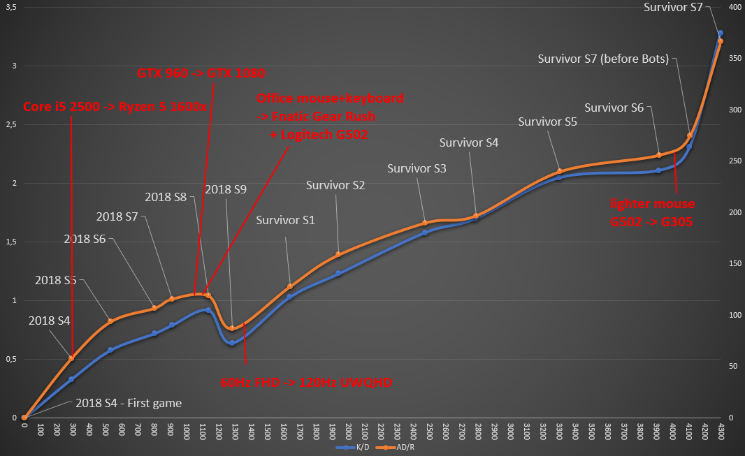 Hätte jetzt gedacht, dass meine Tastatur, GPU und evtl. Monitor kleine oder größere Schwachpunkte bei mir sind.