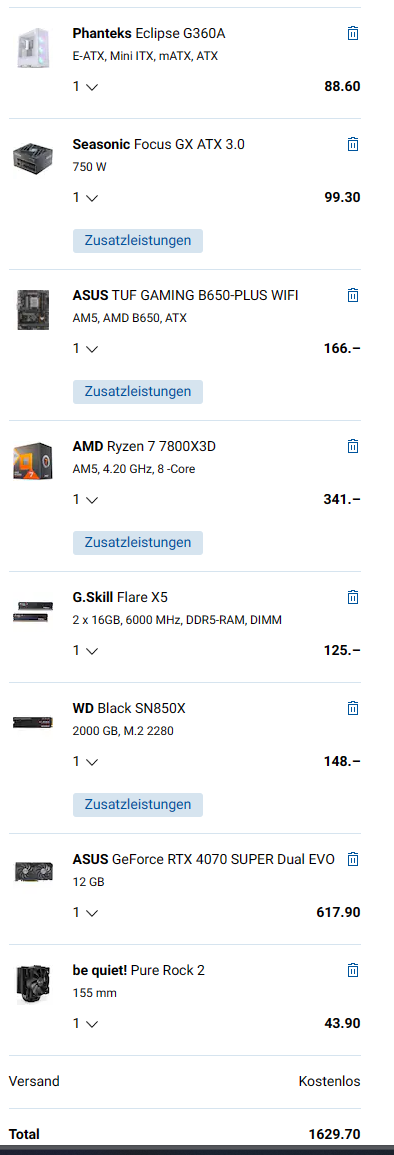 - Ich habe schon etwas selber zusammengestellt, ich habe aber das Gefühl, das ich bei der CPU und beim Mainboard sehr teure Komponenten ausgewählt habe und bei der GPU eher zu wenig einberechnet habe.