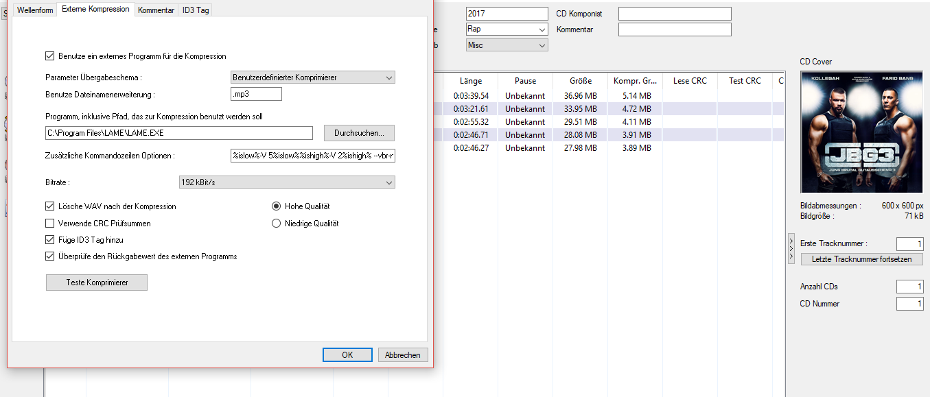 Vielleicht kann mir jemand einfach sagen, was die beste Kompressionsrate ist, was ich denn auch bitte einzustellen habe. Weil in einem vorherigen Thread meinte einer, das 192 kbit/s das beste ist.