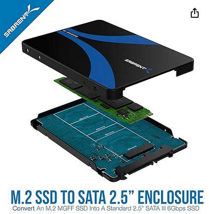 Da sollte so ziemlich jeder üblicher 2.5 Zoll SATA to M2 Adapter funktionieren. Du musst nur schauen das der Adapter für M2 SATA ist, womöglich gibt es diesen auch ausgeführt für das SATA und NVMe Protokoll.