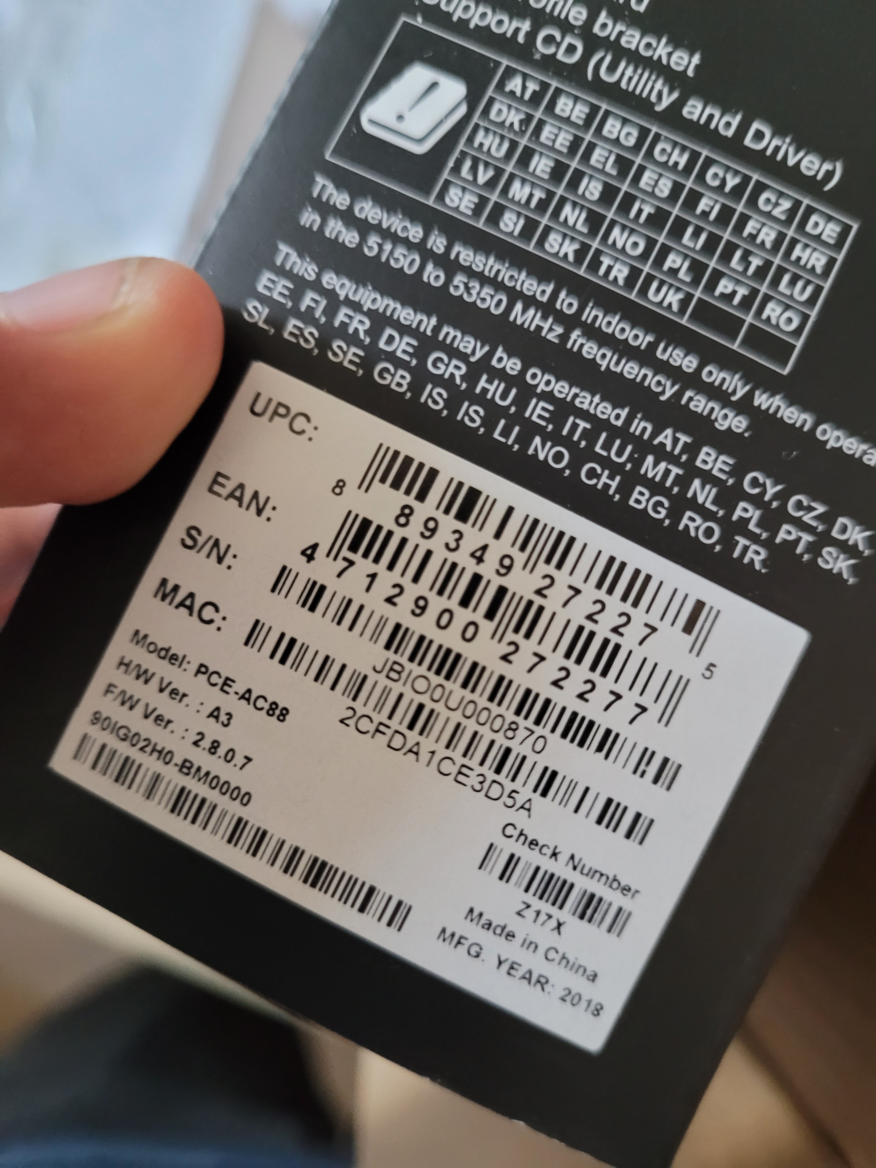 Hallo, ich würde gerne wissen welche Mac Adresse ich nun brauche zum Verbinden des WLANs mit dem Asus Adapter pce-ac88.