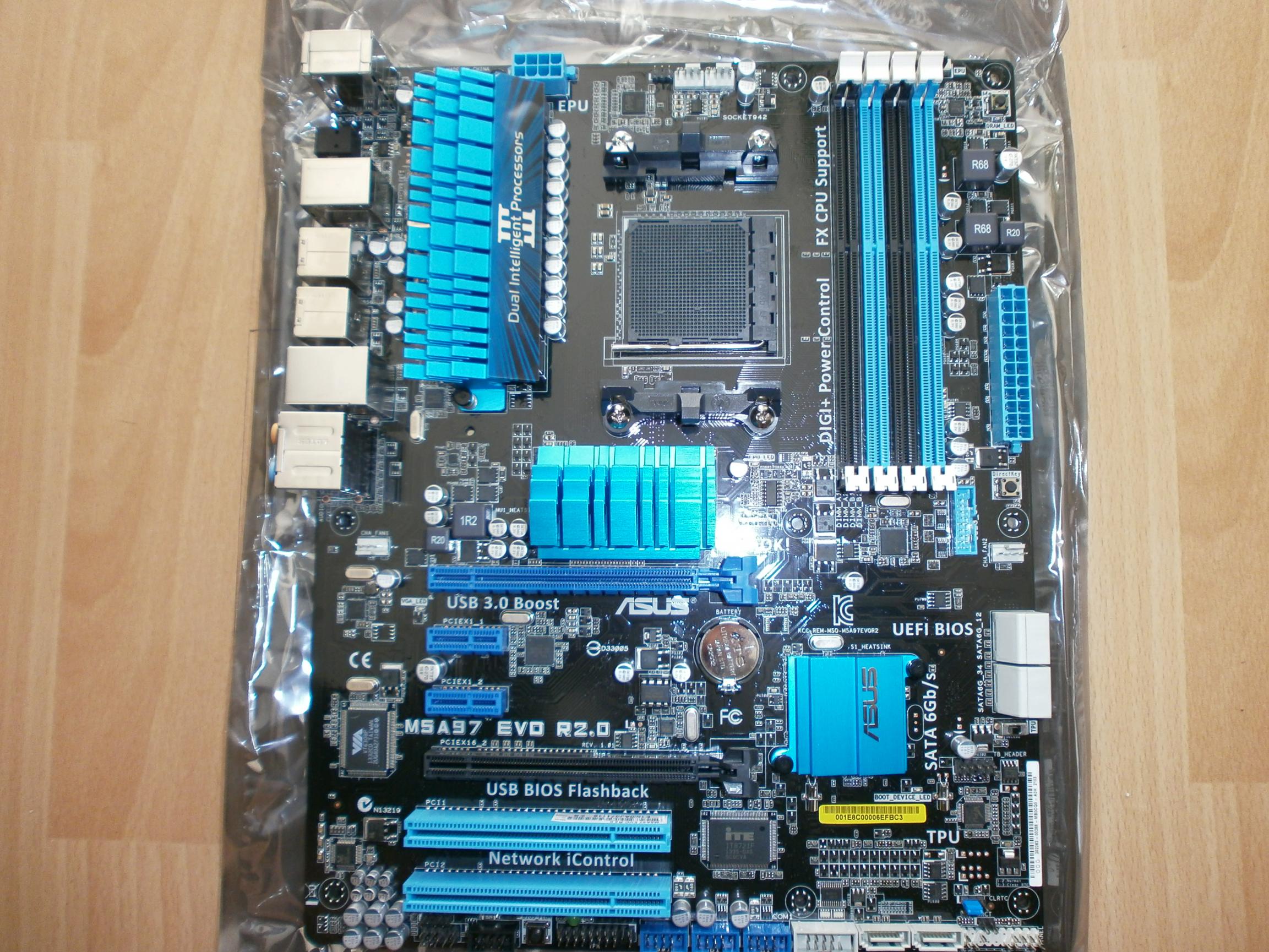 weil ich weiter aufrüsten möchte , habe ich mir ein neues Board gekauft . Es ist ein Asus M5A 97EVO R2.0 geworden.