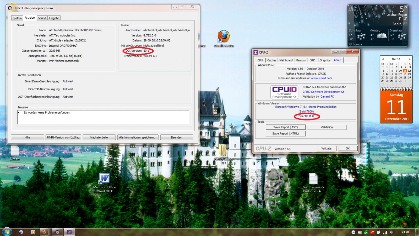 So, aber im Windowseigenen "Leistungsinformation und -tools"-Fenster wird nur die DirectX-Version 10 angezeigt. Im DirectX-Diagnoseprogramm wird die installierte Version 11 angezeigt aber unter dem Reiter "Anzeige" wiederrum 10.1. Die Diagnoseprogramme CPU-Z und GPU-Z zeigen dagegen Version 11 an. Siehe Bilder im Anhang!