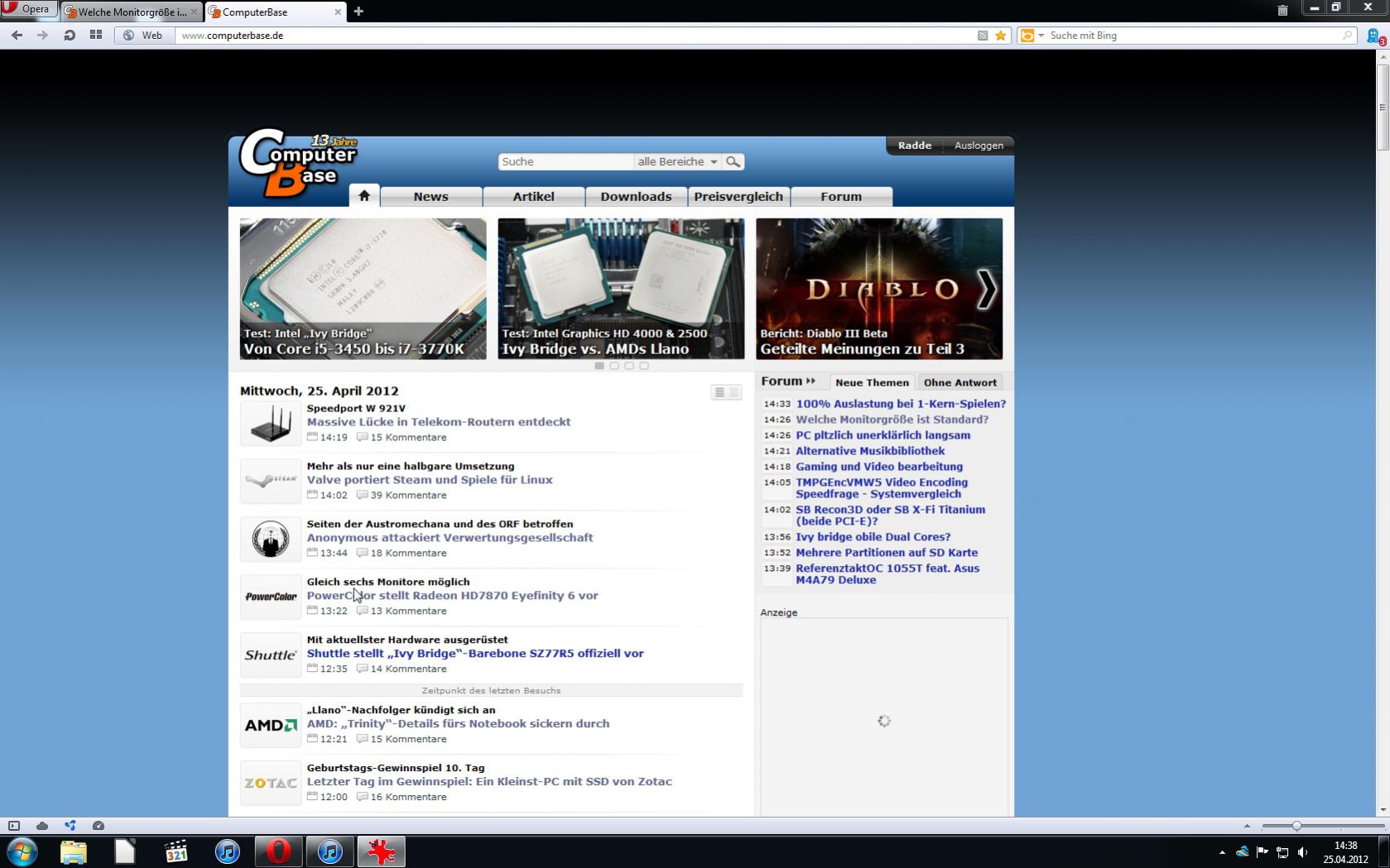 Alternativ könnte man Computerbase + Forumbase nebeneinander anzeigen lassen und genau hier zeigt sich die Stärke von Widescreen (egal ob 16:9 oder 16:10). Bei Office einfach ein Segen, wenn man links eine PDF offen hat und rechts ein Dokument, welches man bearbeitet. Windows-Tase + Pfeiltaste Links und anderes Dokument mit Pfeiltaste Rechts und man hat ruckzuck viel Fläche, die wirklich benutzt wird.