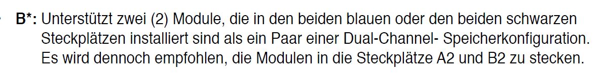 Mein Asus Mainborad P8H67-M Pro hat vier Slots, A1, A2, B1, B2.