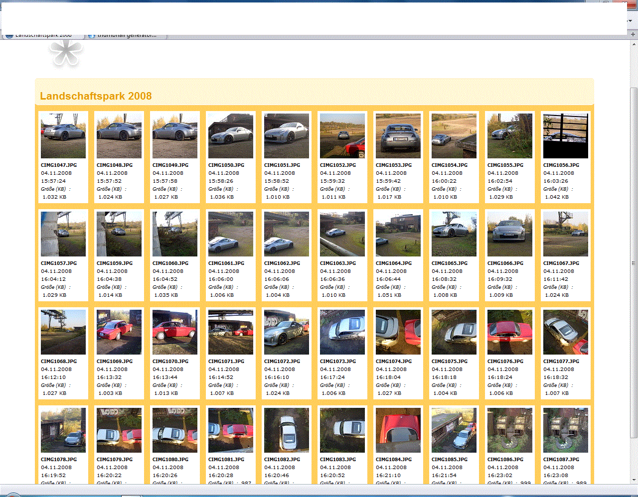 ich habe vor langer Zeit angefangen mir eine Homepage zu basteln. Ich hatte zu der Zeit ein Programm, dass automatisch aus den Bildern Thumbnails gemacht hat und die einzelnen Links hergestellt hat. Ich musste nur noch die erstellten Ordner auf meinen Webspace kopieren und die html verlinken und fertig. Ich komme leider zum Verrecken nicht mehr auf den Namen des Programms.
