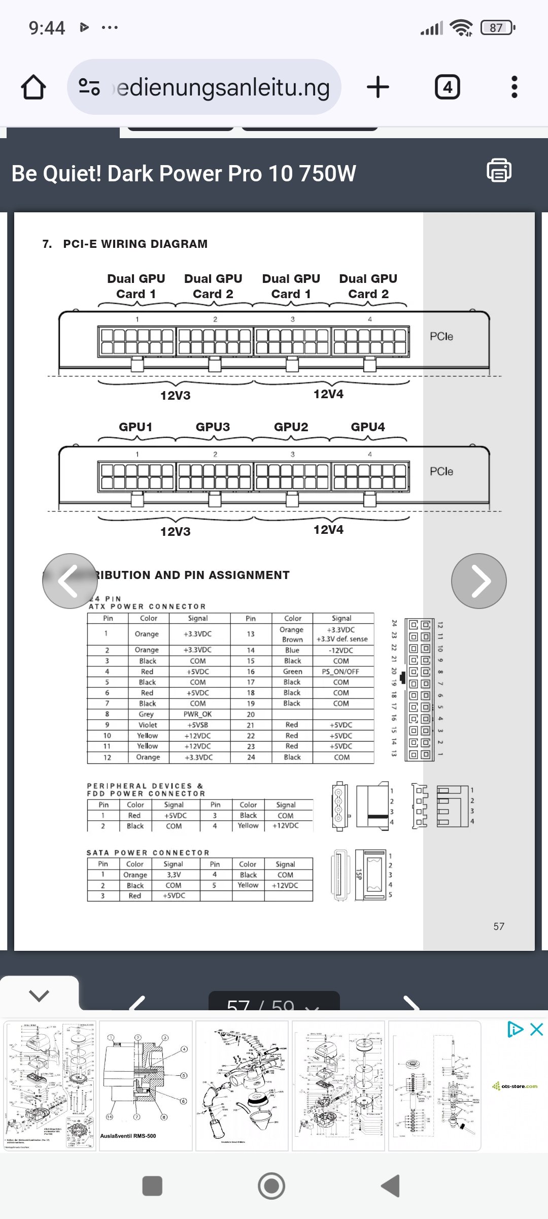 Das be quiet! P10 DARK Power Pro 750W hat mehrere 12V Schienen (Rails), damit Du die Last auf den einzelnen 12V Schienen gleichmäßig verteilst. Solltest Du, wie vom Vorposter geschrieben, die Steckplätze PCIe 1 und 3 bzw. PCIe 2 und 4 verwenden. In den späteren Netzteilgeneration schreibt das be quiet! dann auch direkt ins Handbuch (bspw. fürs Straight Power 11).