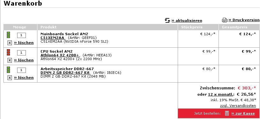 ich möchte in naher Zukunft mehr RAM verbauen, im Moment sind nur 756mb DDR1 installiert, da dies nun bereits ab und an an seine Grenzen Gerät und Anwendungen länger brauchen, soll es nun aufgestockt werden. Das restliche System seht ihr in meiner Signatur. Nun die Frage welche Taktrate beim RAM am besten zum Rest des Systems passt, 2 GB DualChannel Kit soll es werden, bin mir aber über die Taktrate halt noch nicht einig, 400mhz oder doch eher mehr, weil eben Preis/Leistung besser ist. Habe auch bereits bei Geizhals Preise verglichen, es gibt ausser den 400er nnur noch 466 die aber direkt doppelt so teuer sind wie die 400er...