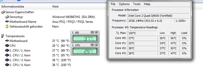 Wenn ich die coretemp-Werte mit denen von Everest oder PC-ProbeII vergleiche, fällt mir jedoch auf, dass es dort keine einzelnen Werte gibt für jeden Kern, sondern nur einen für den ganzen Prozessor.