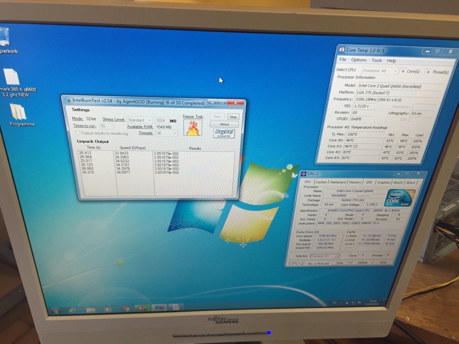 Ihr habt recht, CoreTemp rät richtig. Denn mit dem Intel Burn Test drosselt er temperaturbedingt etwas. Wieso brennt dieser Intel Test noch heftiger als prime95?