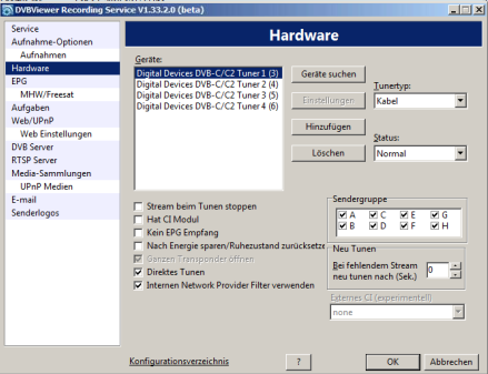 Das Ganze hängt an einer QUAD-LNB-Anlage. 2 für die PC-TV-Geschichte, 2 für TVs.