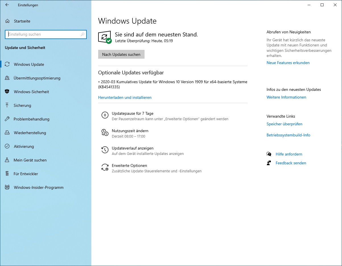 2020-03 Kumulatives Update für Windows 10 Version 1909 für x64-basierte Systeme (KB4541335)