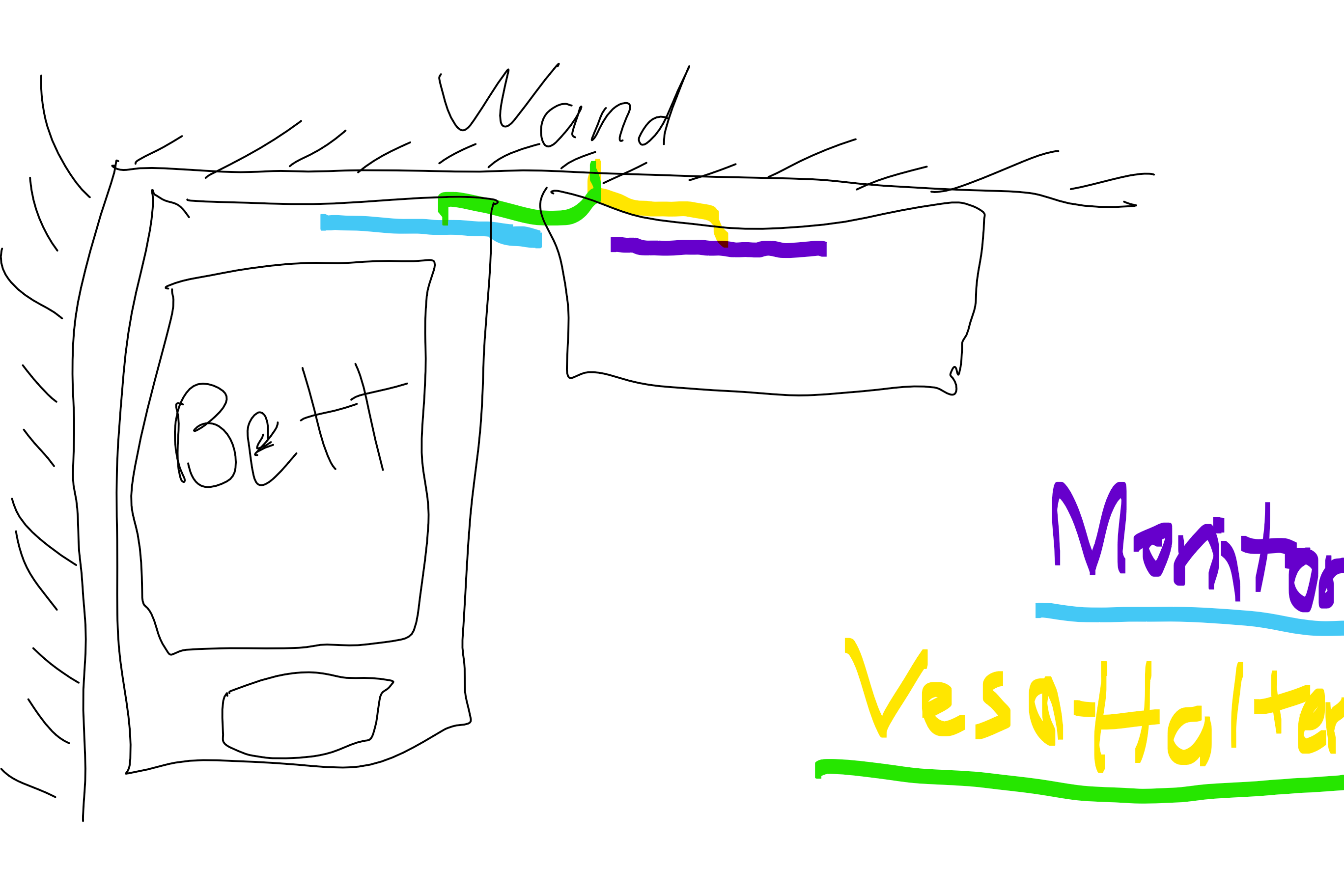Ich plane mir einen Ultrawide-Monitor (34") zu kaufen und will damit nicht nur am Schreibtisch Zocken/Arbeiten sondern auch vom Bett aus Filme/Serien zu gucken. Dabei steht der Schreibtisch direkt neben dem Bett. Nun brauche ich eine (Vesa-)Halterung um den Monitor problemlos von der einen Position in die andere zu verschieben. Ich habe euch eine wunderschöne Skizze mit beiden Positionen gemacht, damit ihr vlt. besser versteht, wie ich mir das vorstelle. Ich hoffe, dass ihr mir ein Halterung empfehlen könnt bzw. zumindest sagen könnt, worauf man achten muss.