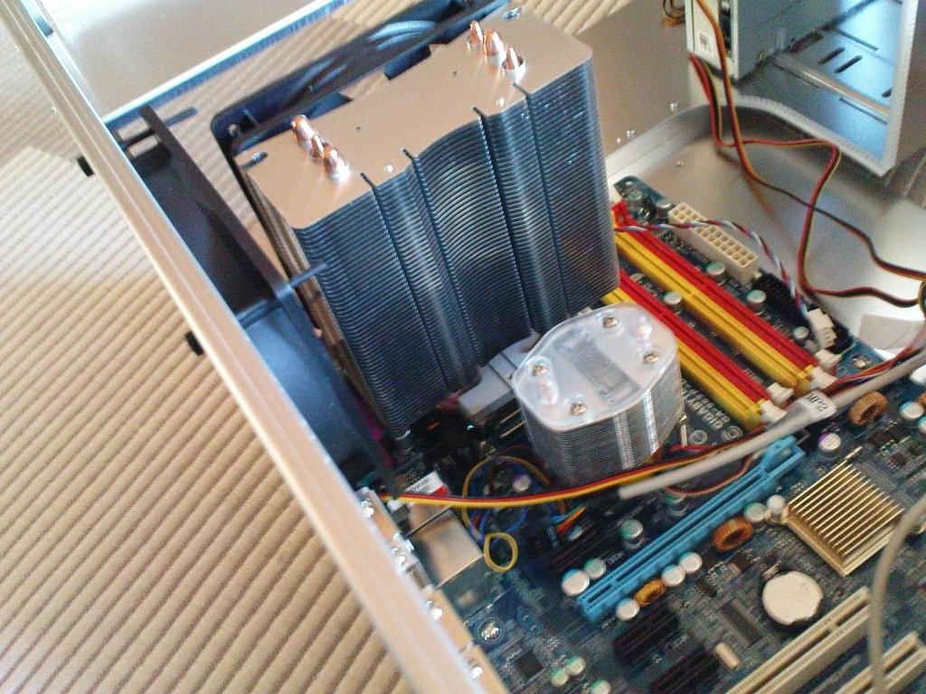 Der Kühler sollte sehr leise arbeiten, und dennoch einen übertakteten Betrieb ermöglichen, außerdem sollte er auch stark genug sein um später noch für ein Quadcore auszureichen.
