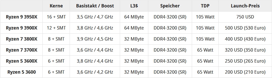 Hallo ich muss mich entscheiden welchen der neuen Ryzen 3000 Prozessoren ich kaufen soll.