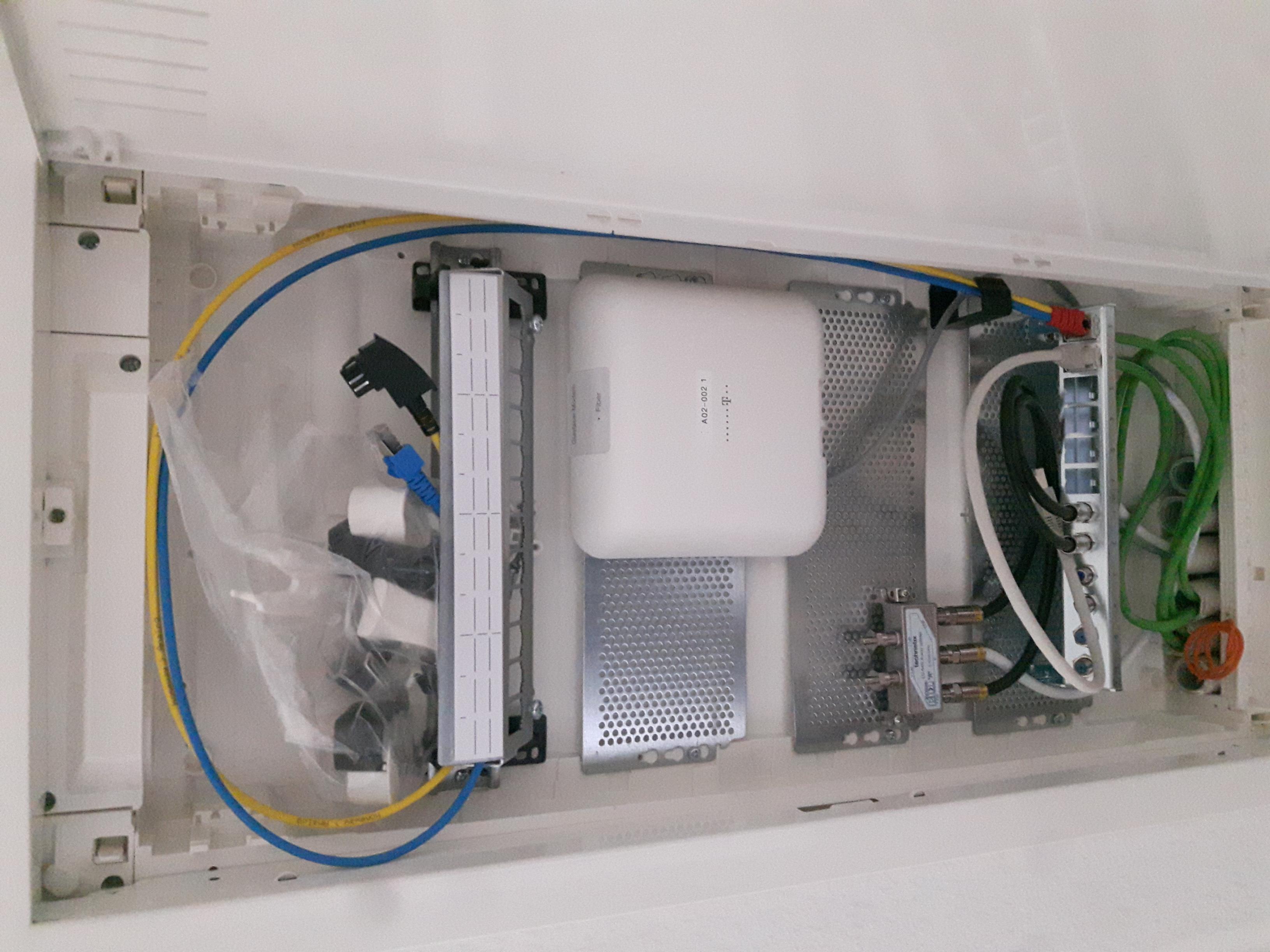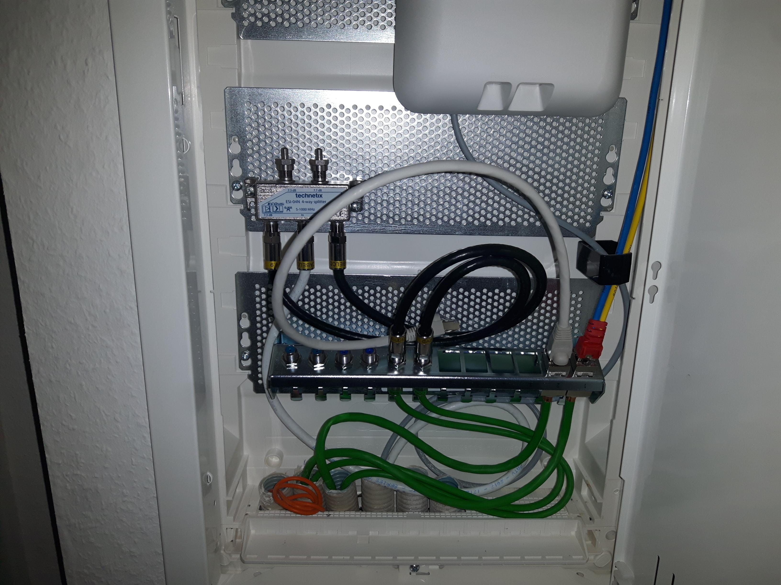 ich ziehe mit meiner Freundin bald in eine neue Wohnung und es wurde bereits Netzwerkdosen und Modem sowie Kabel (Koax) in Schlaf und Wohnzimmer verlegt sowie ein Kabelsplitter und Glasfaser Modem unter dem Sicherungskasten installiert in einem extra Uputz Kasten. siehe Bilder.