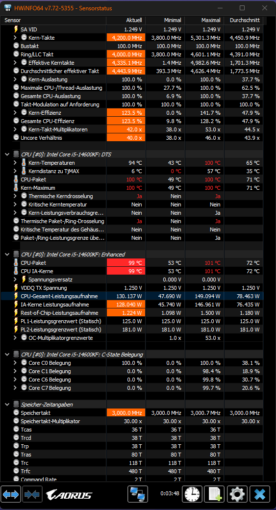 Ach ja im Bios ist PL1 125 Watt und PL2 181 Watt eingestellt