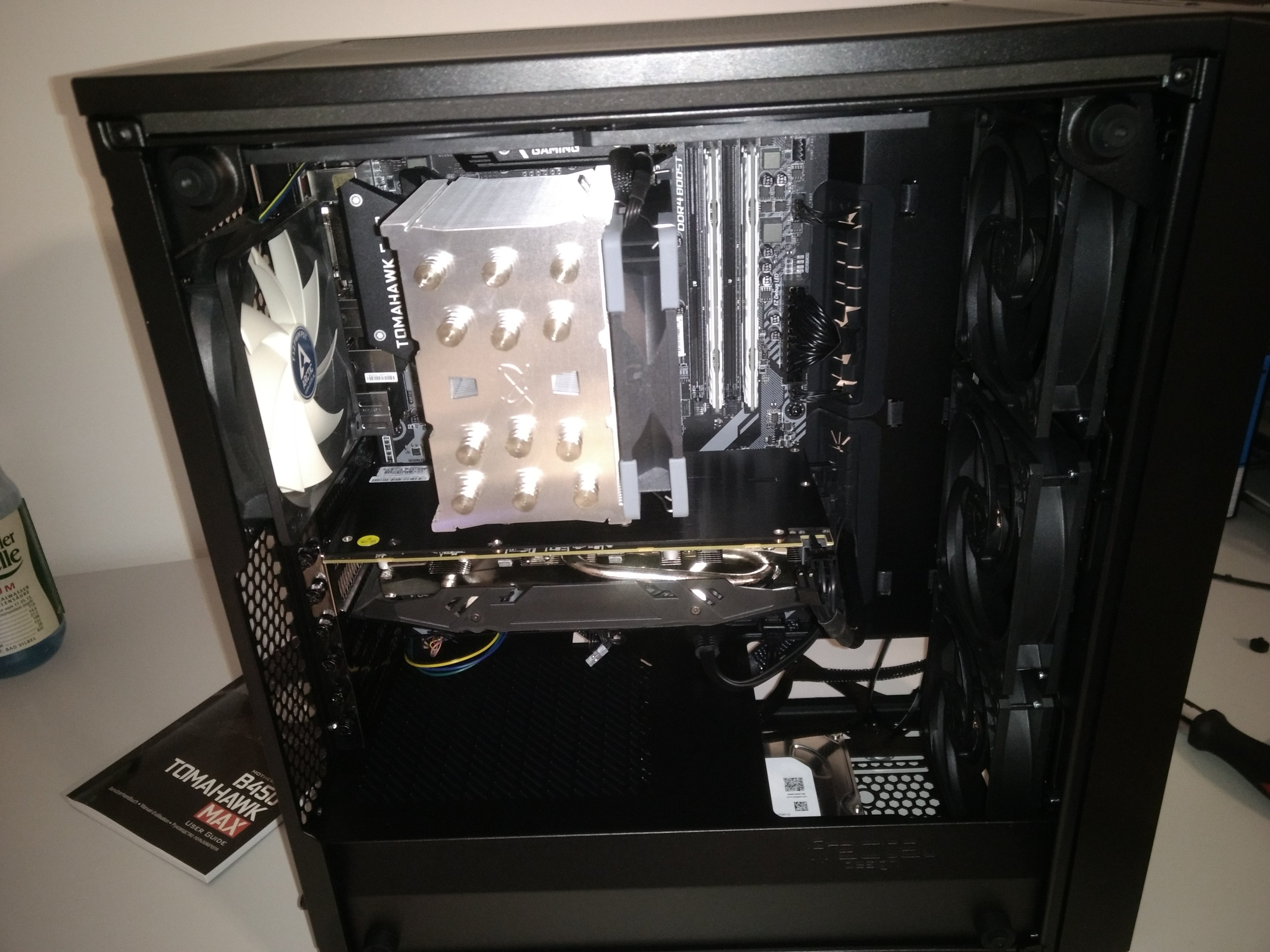 Ggf kannst du später auch noch Lüfter an deine obere Seite vom Tower machen um Luft rauszublasen.