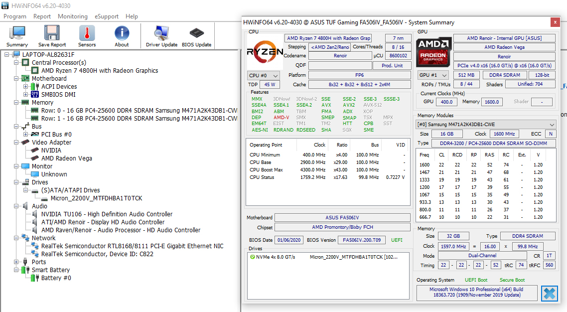 Laut dem Testberichten im Netz sind im Asus TUF Gaming A15 DDR4-3200 CL22 Module verbaut:
