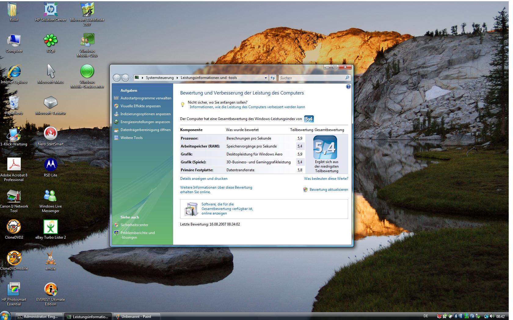 Der Leistungs index taugt so viel wie ne Warze. Hab schon so viel unerschiedliche Werte gehabt obwohl ich nichts an der Hardware verändert hatte. Vor allen die Grafik Spiele Sektion ist bei mir von 4.2 bis 5.4 (derzeit 5.4) Speicher von 5.2 bis 5.9 (derzeit 5.4) Seit gestern hab ich ne neue CPU Xeon x3210 Wert 5.9