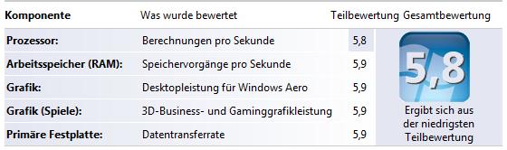 Selbst wenn dieser Index sogut wie nichts aussagt, poste ich mal dei Daten des Arbeitsrechners: