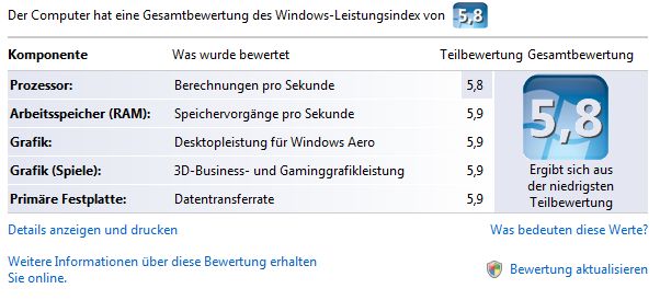 Einmal hatte ich bei der Festplatte 5,9. ICh weis nicht, wie das möglich ist, wenn ich sonst immer nur 5,7 habe.