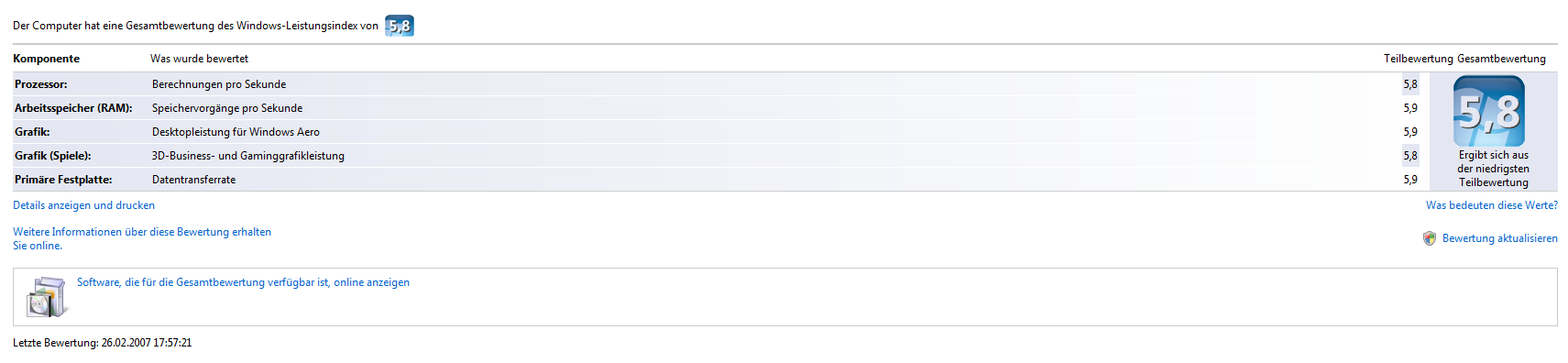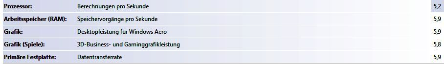 Ende der Geschichte, ich hatte einen Index mit dieser Hardware von 5,3 und nach den ganzen Tests gleiche Konstellation, frische Installation alles so wie vorher auf einmal einen Index von 4,9...