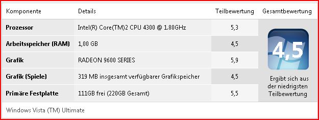 Alles 5.9 ausser CPU und Platte, dafür gibts nur 5.7. Daraus ergibt sich dann 5.7 für das Gesamtsystem