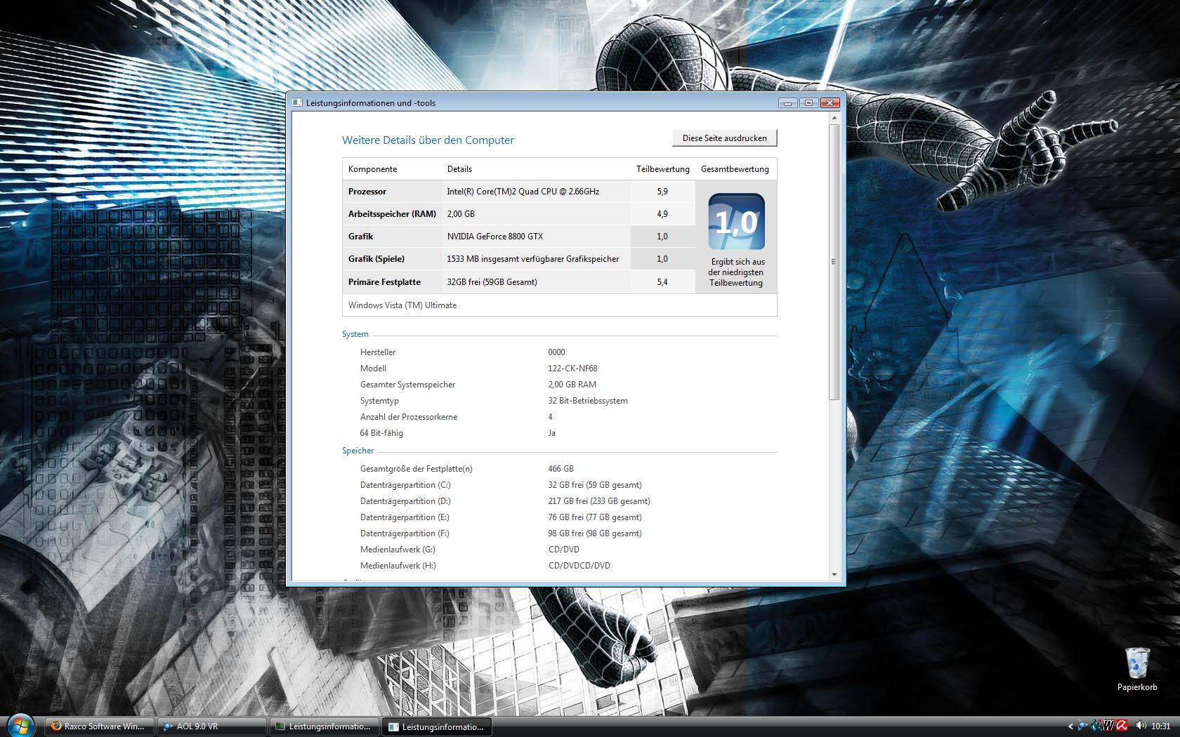 Hier meine Komponenten Bewertungen unter Vista Ultimate