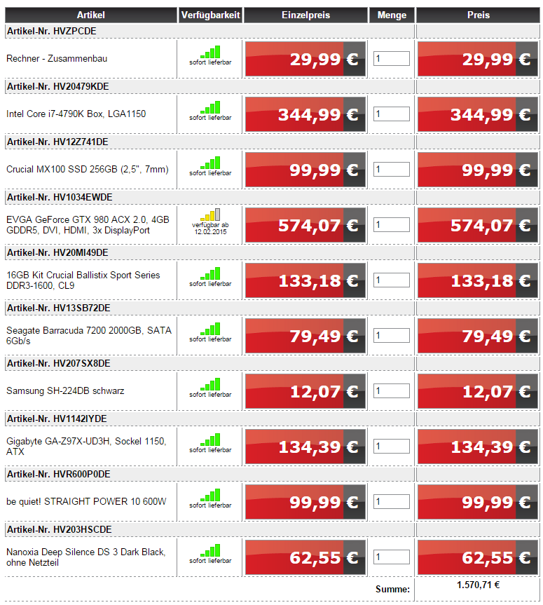 5) One Computer Core i7-4790K, 4x 4.0 Ghz, 16GB DDR3, 2000GB, 22x DVD Brenner, 4096MB NVIDIA Geforce GTX980[22906]