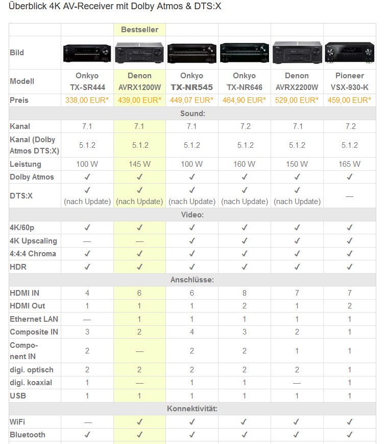 ich hätte gerne einen neuen AV-Receiver zum Anschluss des TV bzw. Sky-Box, BluRay-Player und PS4-Slim via HDMI.