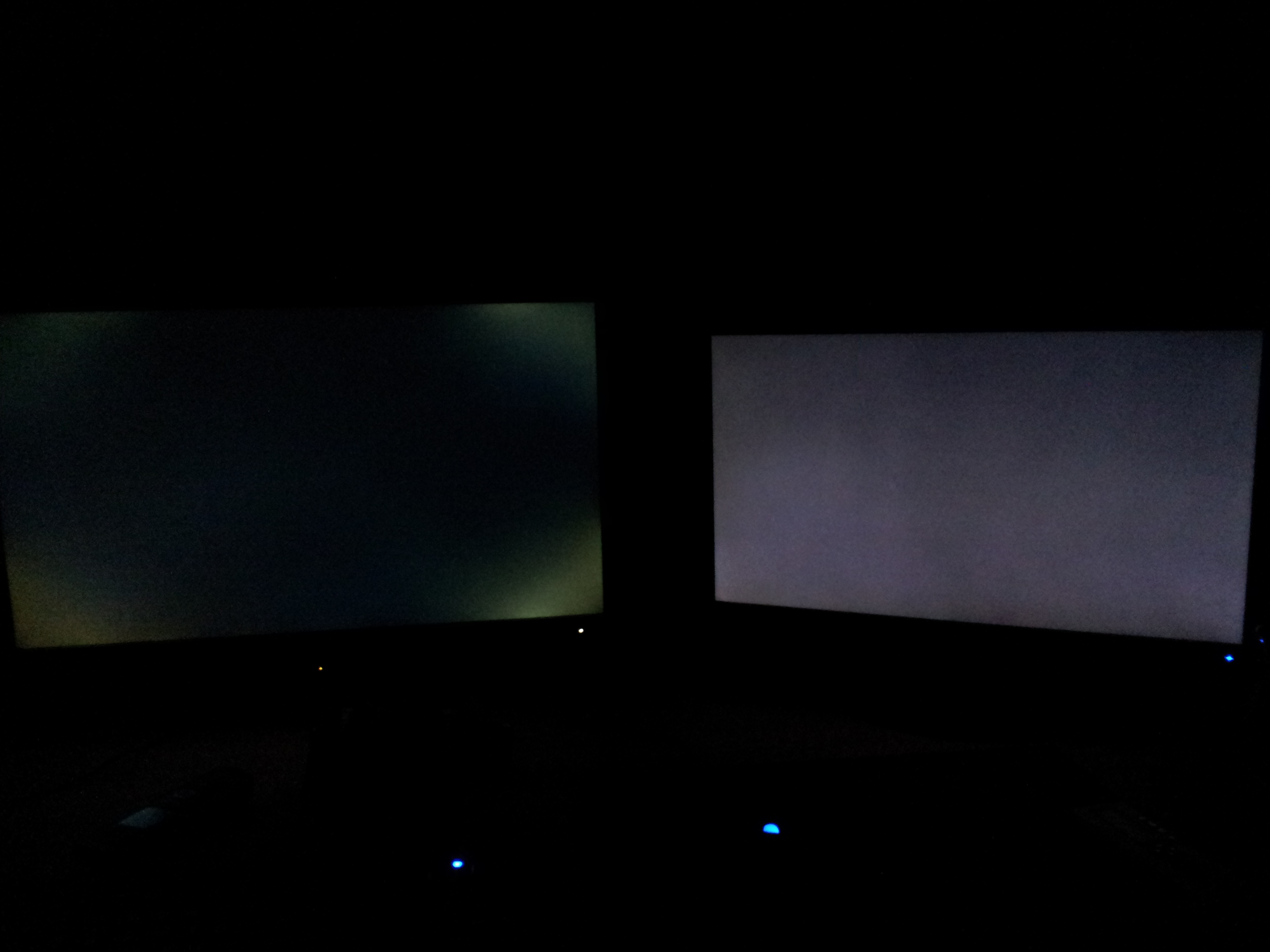 Ich wollte euch noch zwei Bilder nachreichen, wie stark bei meinem Monitor das Backlight Bleeding in kompletter Dunkelheit und schwarzem Bild ausgeprägt ist.