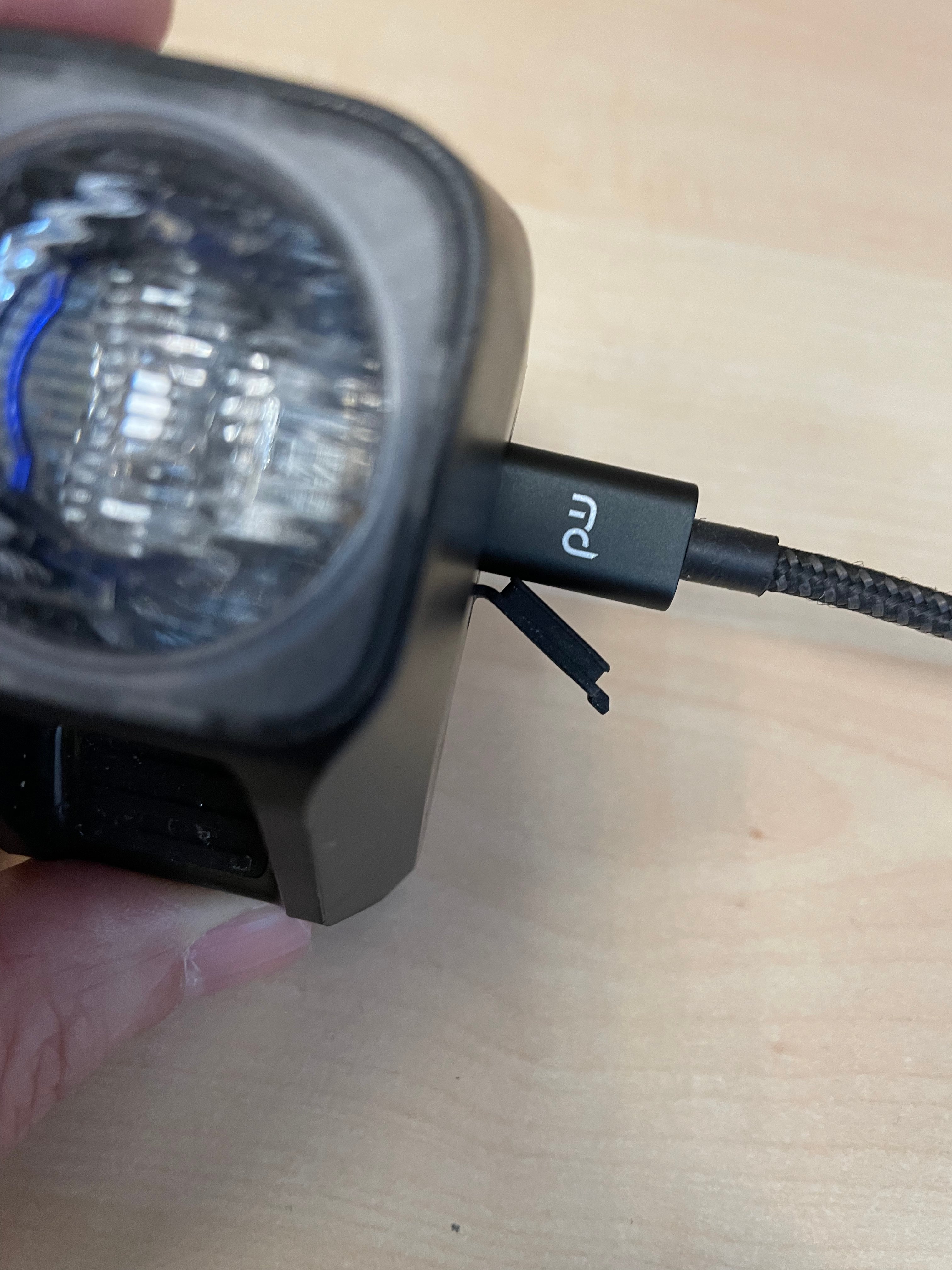 Die Fahrradleuchte von ACID lädt auch mit jedem anderen Micro-USB-Kabel...