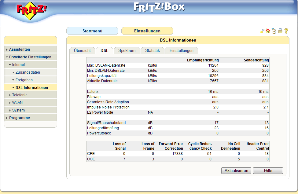 Kann man Anhand des Screens etwas feststellen? Scheinbar kommen etwa 10296 an, aber am PC hab ich dann nur die 7667 kBit/s.