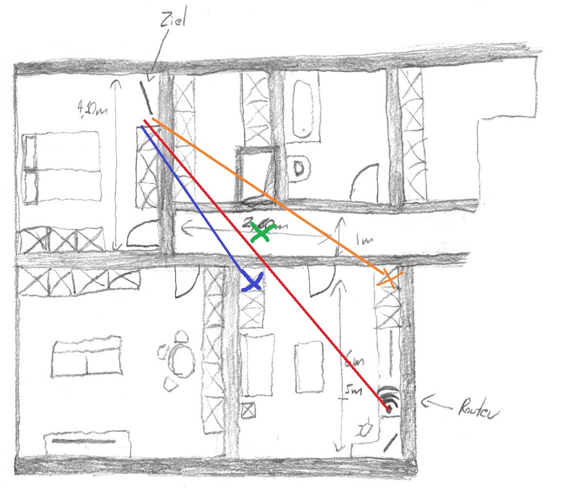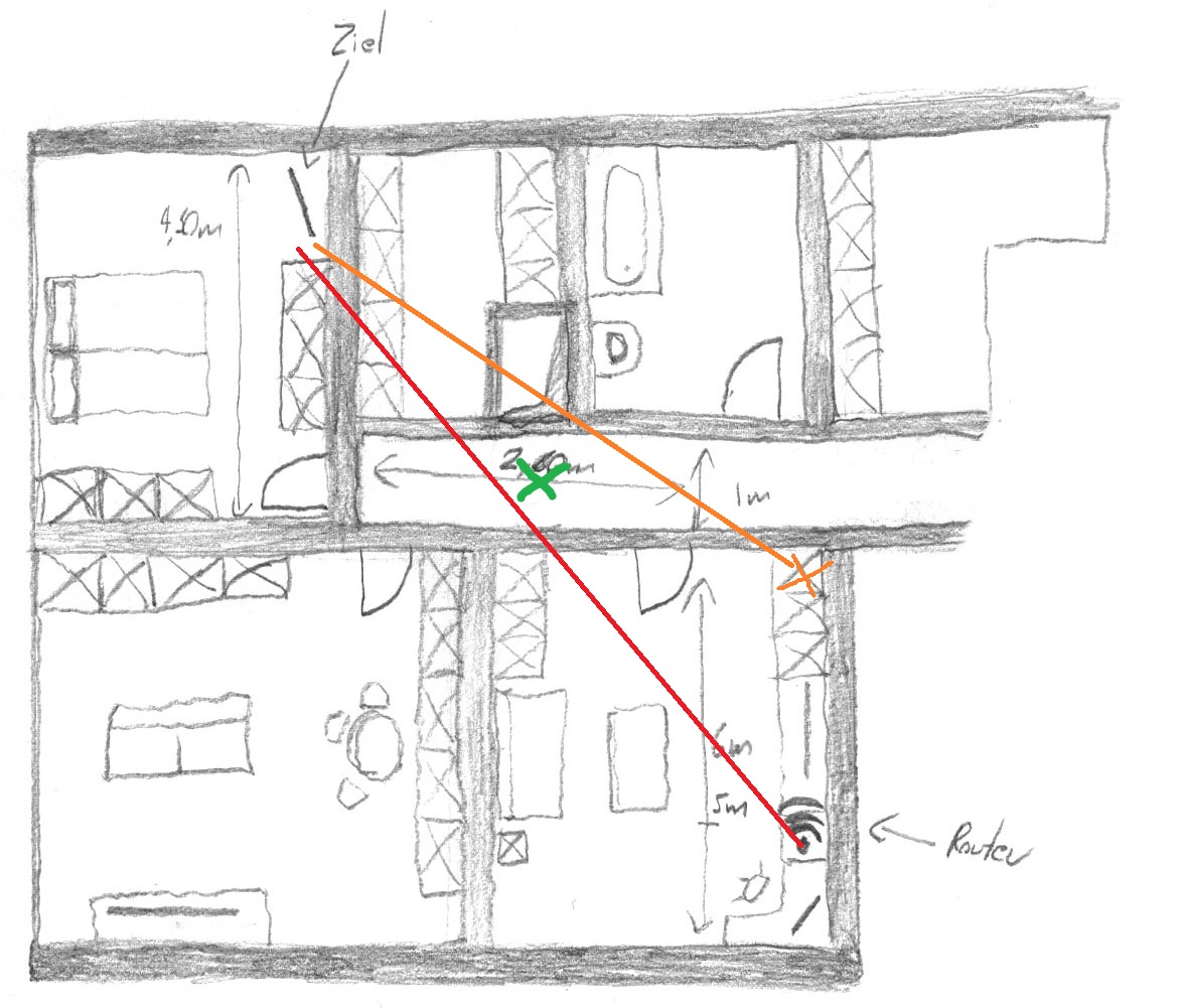 Wir würden gerne am anderen Ende der Wohnung im Schlafzimmer den neuen kleinen Smart-TV mit Internetzugang versorgen, um Netflix etc. zu nutzen. Allerdings reicht die Reichweite in dieser Zimmerecke nicht mehr und pendelt zwischen einem und keinem Balken Empfang, sodass ich den Fernseher dort nicht mal ins WLAN-Netz verbunden bekomme. Nun überlege ich, einen Repeater im Flur aufzustellen, damit auch in diesem Zimmer genug Signalstärke vorhanden ist.