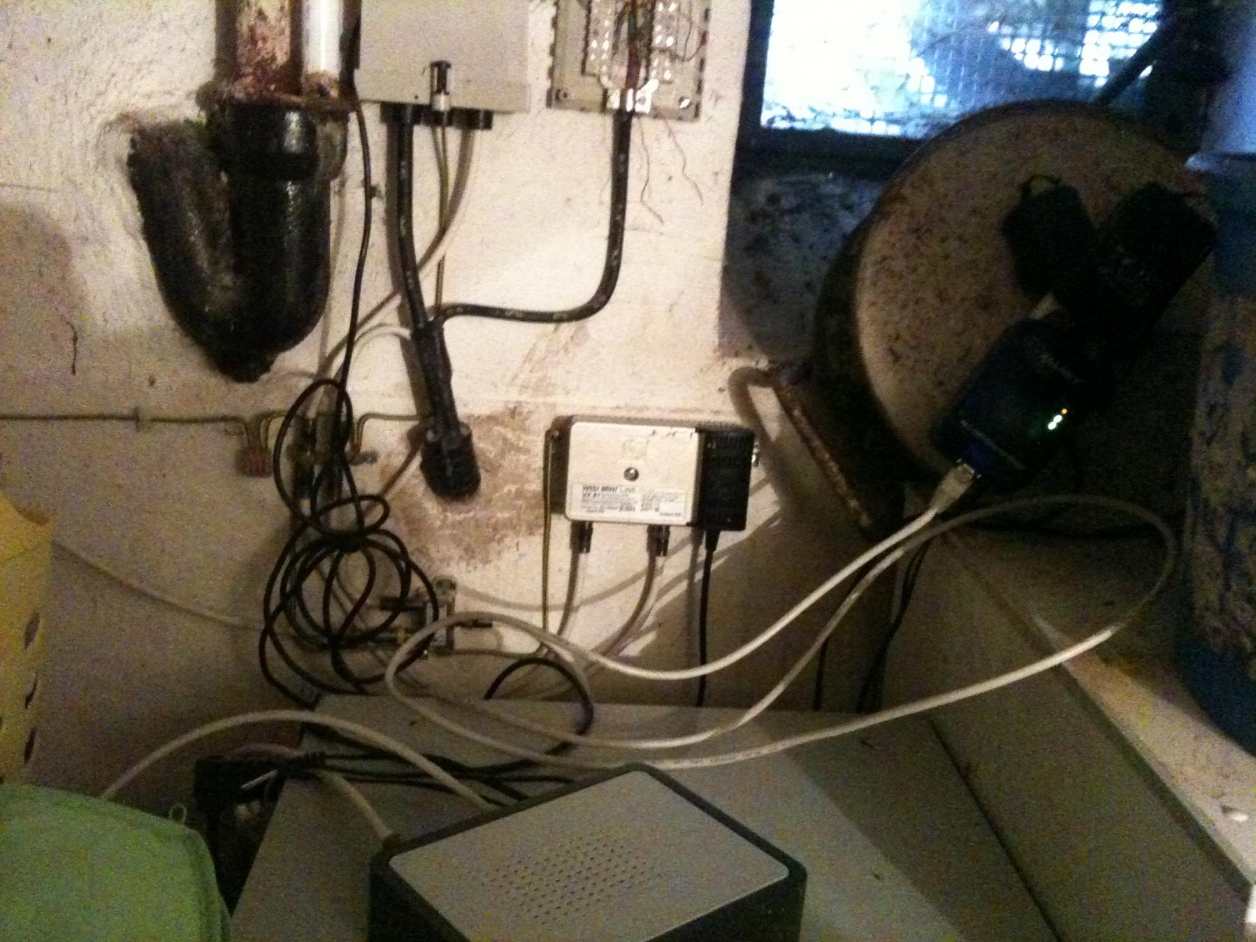 immoment kriegen wir durch den telefon anschluss?? im keller das internet rein, das splittet sich dann bei einer box, wo ein kabel in ein d lan stecker geht, das bis in den 2 stock geht und dort an einen netgear router angeschlossen ist wovon 4 kabel weggehn und ein apple wlan stick angeschlossen wurde der jetzt aber durchgebrannt ist