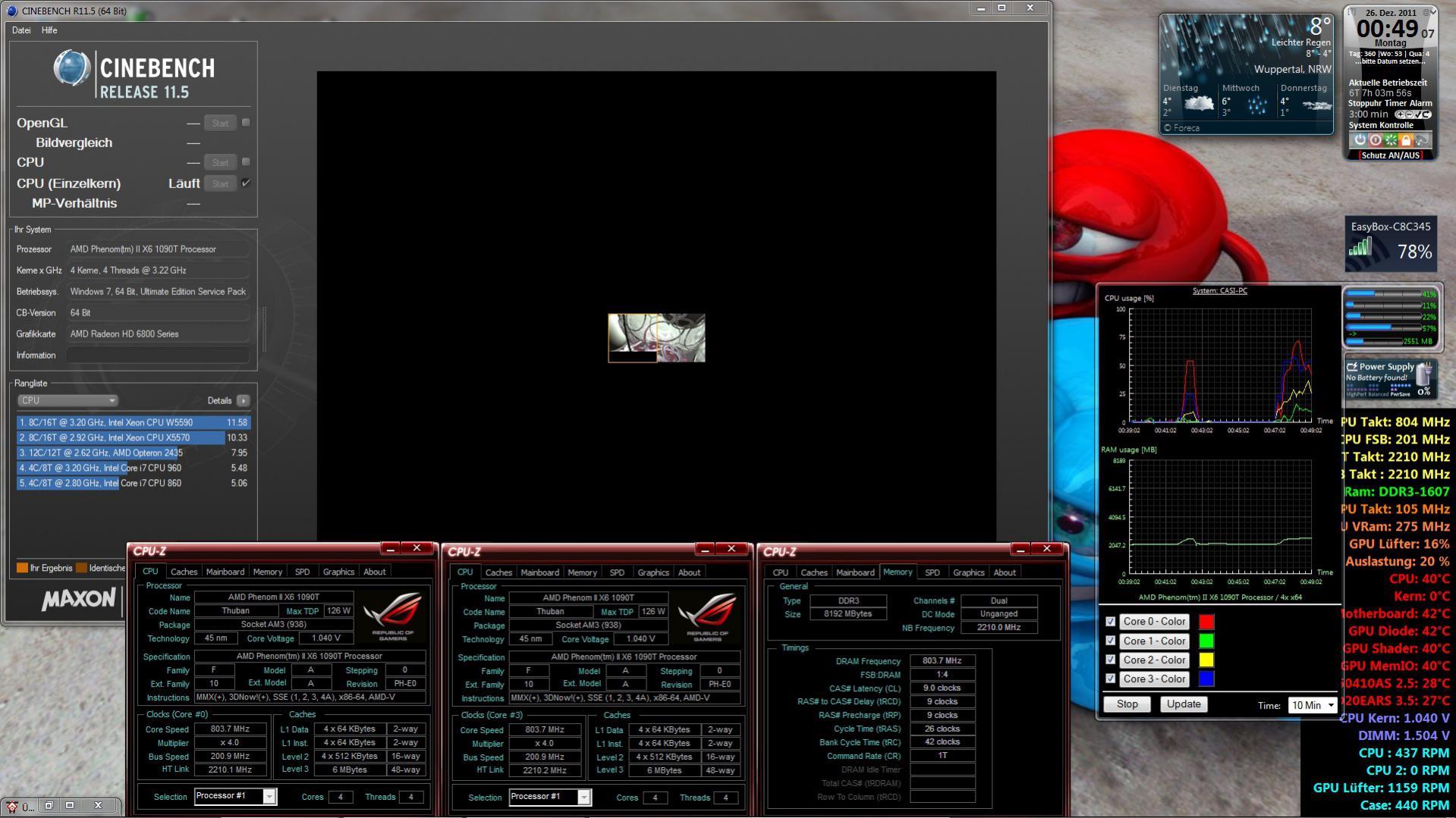 Intel ist 50% pro Kern (bzw. hier pro je 2 Kerne) schneller. Selbst in Anwendungen die alle kerne Nutzen und so zu 100% ausgelastet sind, ist der BD mit 6 Kernen langsamer als ein i5-2400/2500 mit nur 4 Kernen. Das Ding ist wirklich nur die absolute Notlösung und zieht Leute an, die sich von den Eckdaten (6- Kerne, hohe Frequenzen) blenden lassen. Es gibt im Heimbereich keinen vernünftigen Grund für die FX-Prozessoren im Vergleich zu gleichteuren Sandy Brdige-Prozessoren. Namen wie Faildozer machen nicht umsonst die Runde.Das Sys wird net zum Zocken gebraucht, erweitert mal euren Horizont - gibt Leute dir Arbeiten auch an einem PC.